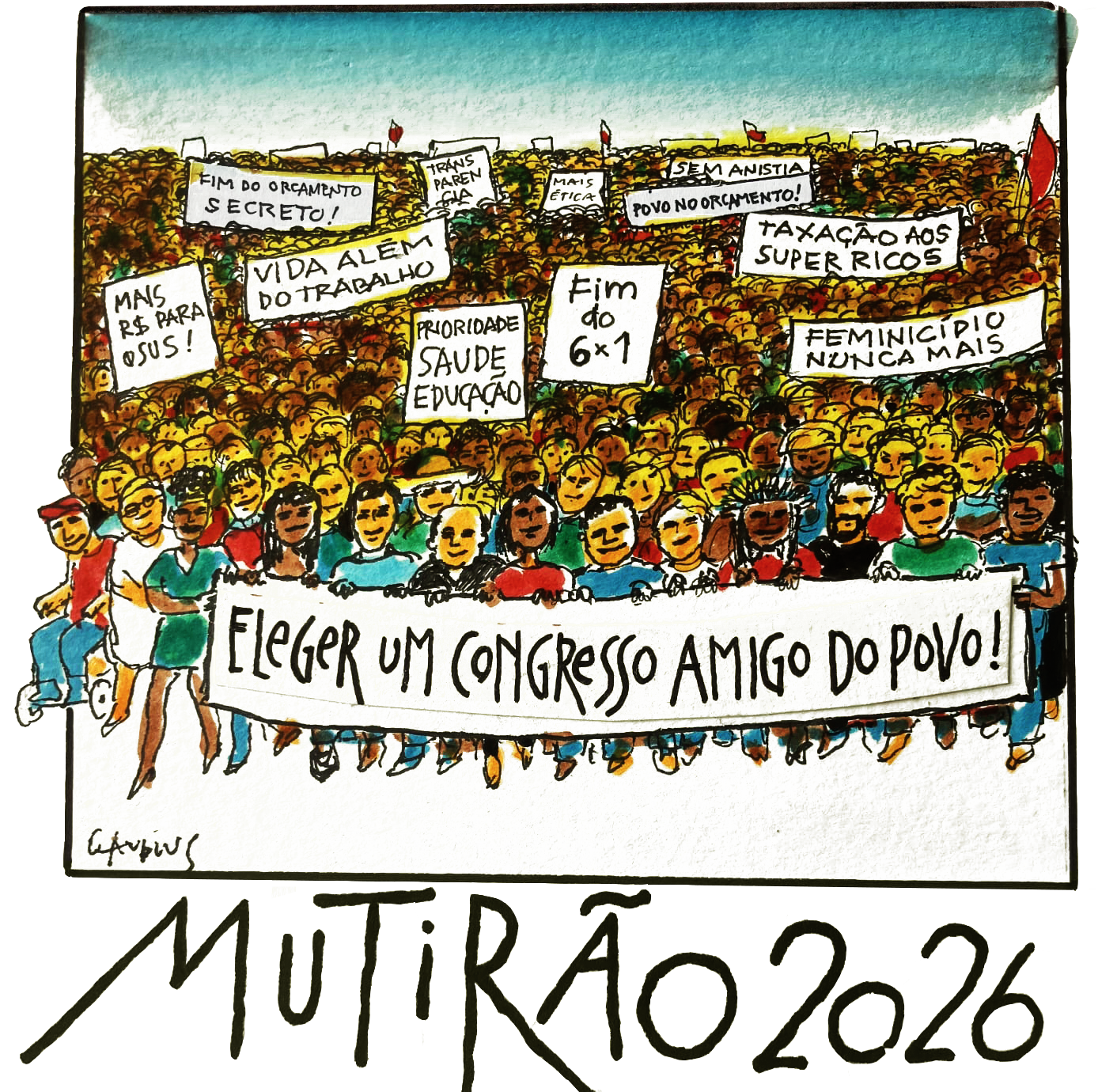 Frente Camiseta – Ilustração com Mutirão 2026